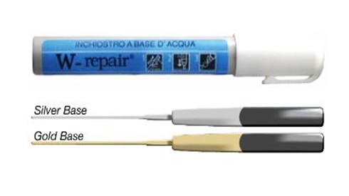 Wasserbasierender Stift zum einfachen Ausbessern von Kratzern oder Lackfehlern, zum Retuschieren von verkratzten, reparierten oder schweißkorrodierten Brillenteilen aus Metall.